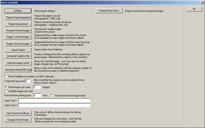 - Variable Images Per Order – as above but this time it will only print the proof order forms when the Extra Proof button is clicked and then order forms for all images taken since the last order form was printed will be printed.